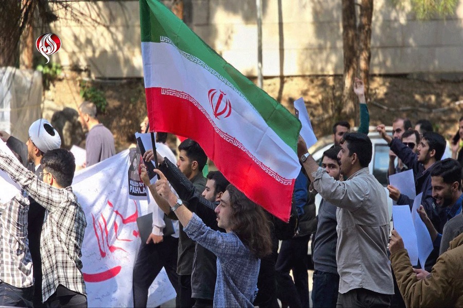 تجمّع طلابي في جامعة الشهيد بهشتي في العاصمة طهران تأكيدًا على دعم الجمهورية الإسلامية الإيرانية والتنديد بأعمال الشغب الأخيرة التي طالت البلاد