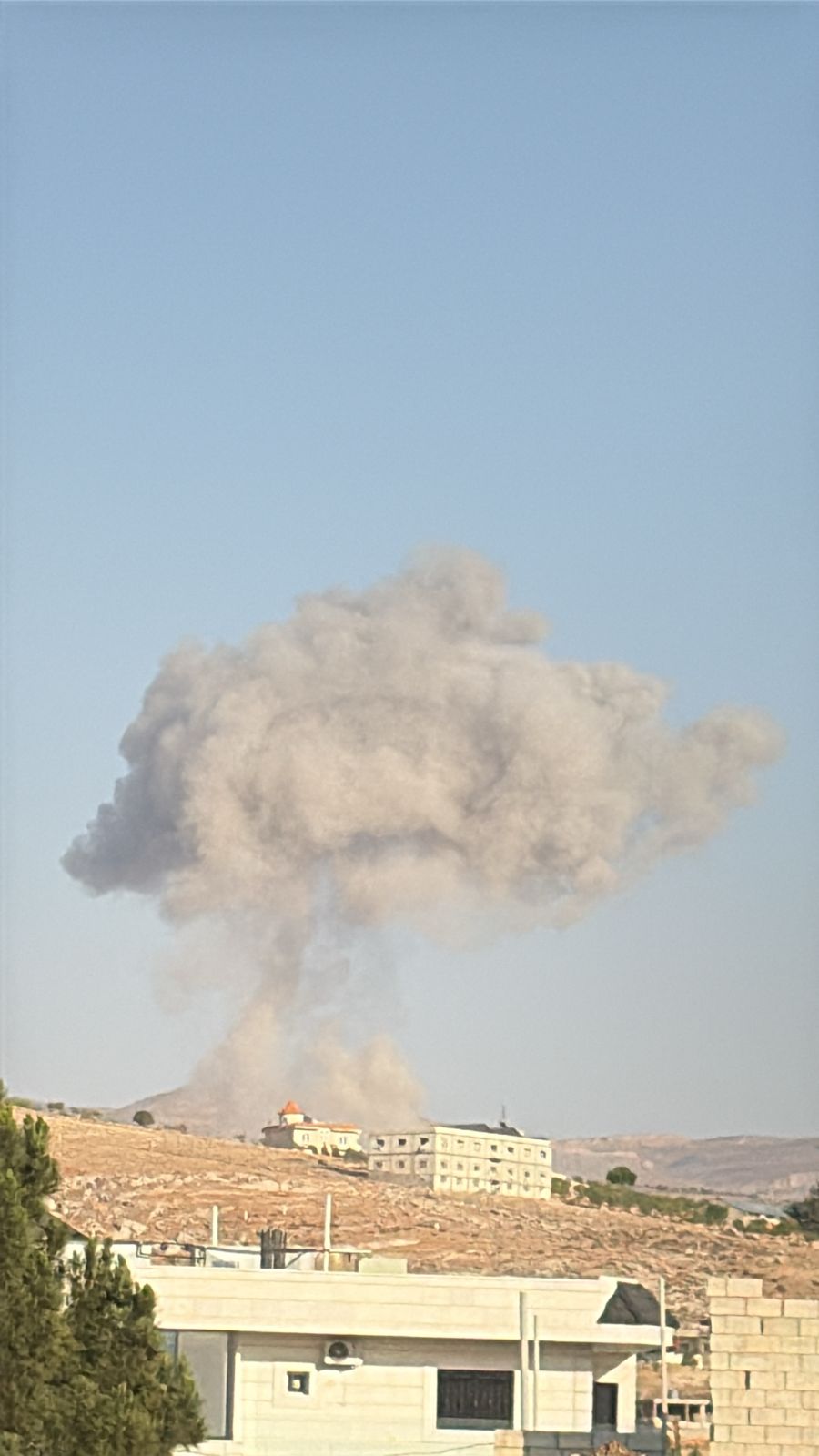 بالصورة| غارات صهيونية استهدفت التلال المحيطة ببلدة الخريبة في البقاع شرقي لبنان