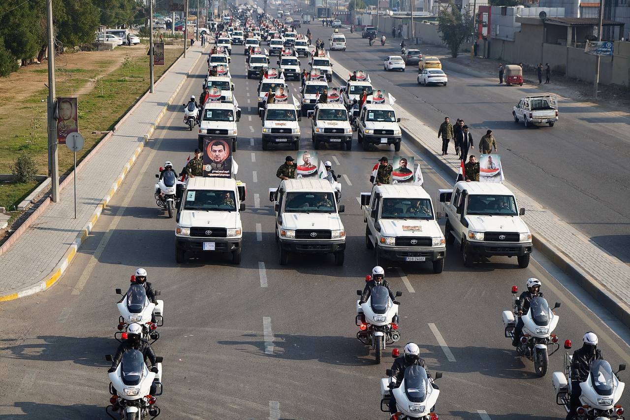 وشارك في الموكب عدد من قيادات الحشد والمواطنين، وفاءً لدماء الشهداء وتأكيدًا على التمسك بخيار المقاومة في وجه الاعتداءات الأميركية المتكرّرة.