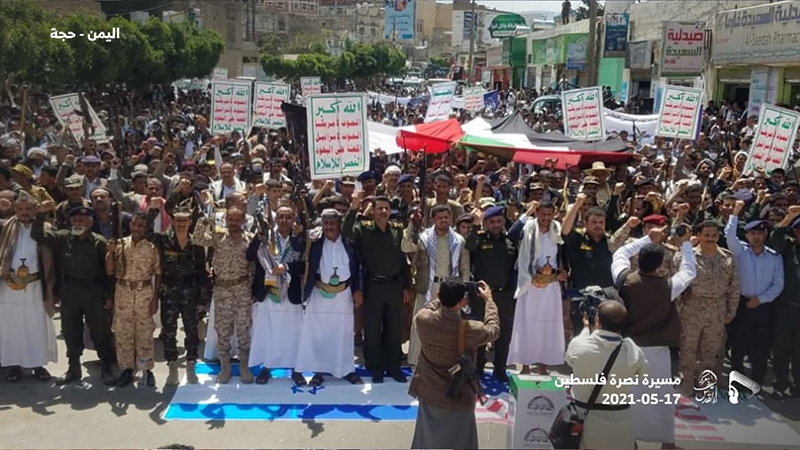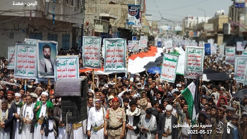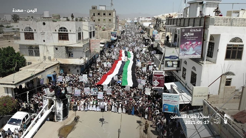 كذلك، وشهدت العاصمة اليمنية صنعاء اليوم مسيرةً حاشدةً نصرة للأقصى الشريف وفلسطين المحتلة، وضدَّ العدوان الصهيوني على الشعب الفلسطيني.