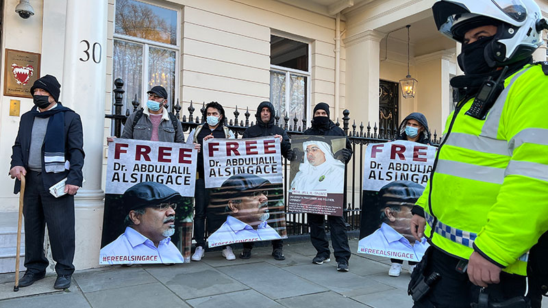 يواصل عبد الجليل السنكيس أحد وجوه المعارضة البحرينية السلمية والأكاديميين المعروفين في المملكة إضرابه عن الطعام المستمرّ منذ تموز الفائت، في الوقت الذي بدأ فيه الناشط البحريني علي مشيمع اعتصامًا أمام سفارة النظام الخليفي في لندن للمطالبة بالإفراج عن السنكيس وعن باقي السجناء السياسيين وفي مقدمتهم والده الرمز حسن مشيمع.