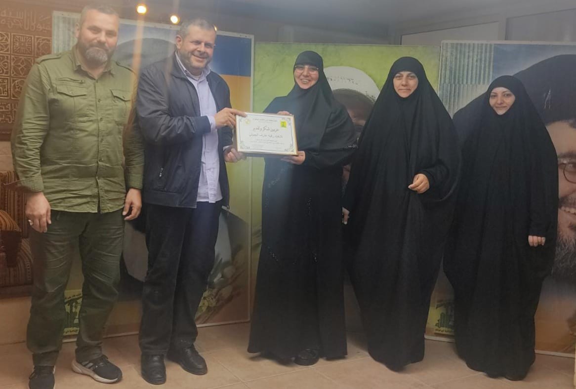 جرى التكريم في قاعة ديوانية الشهيد نادر الجركس في حارة صيدا بحضور مسؤول قطاع صيدا الشيخ زيد ضاهر، مسؤول شعبة حارة صيدا، ومسؤولة الهيئات النسائية في القطاع.