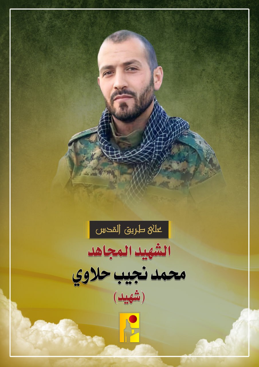 بمزيد من الفخر والإعتزاز، تزف المقاومة الإسلامية الشهيد المجاهد محمد نجيب حلاوي "شهيد" من بلدة كفركلا في جنوب لبنان، والذي ارتقى شهيدًا على طريق القدس.