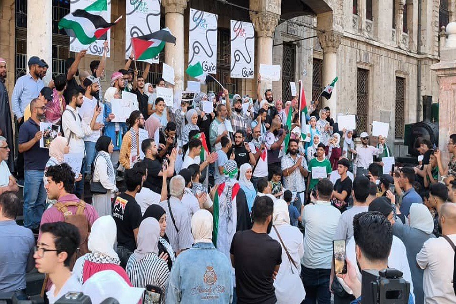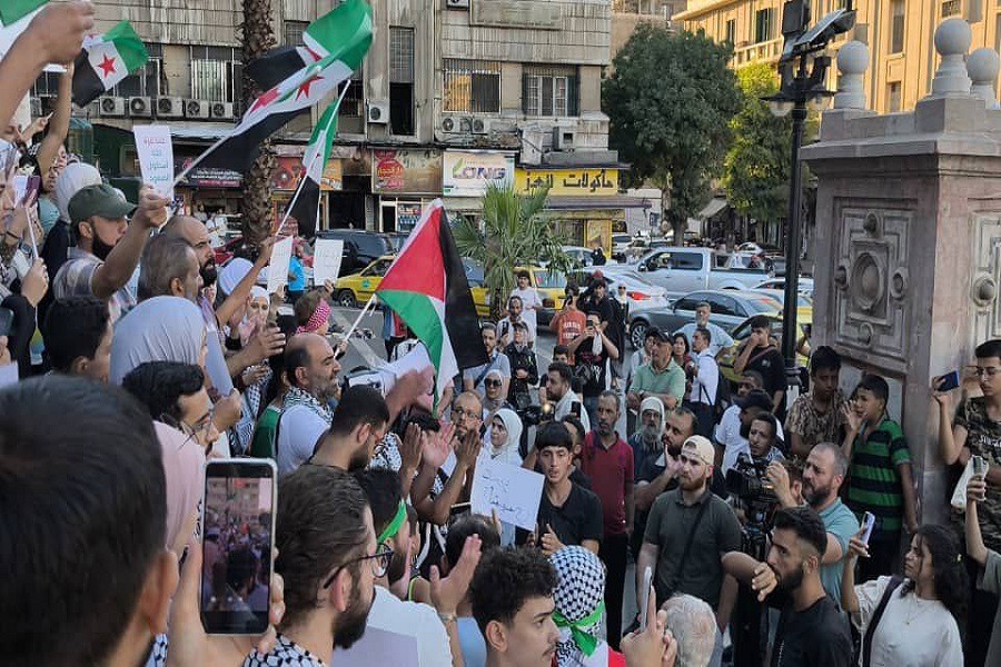 أقامت الفعّاليات السورية والفلسطينية وقفةَ احتجاجٍ غاضبة في ساحة الحجاز بدمشق، رفضًا للتطبيع مع الاحتلال الصهيوني، وتضامنًا مع أحرار العالم على متن "أسطول الصمود" الذي تعرّض للعدوان خلال توجهه لكسر الحصار عن غزة.