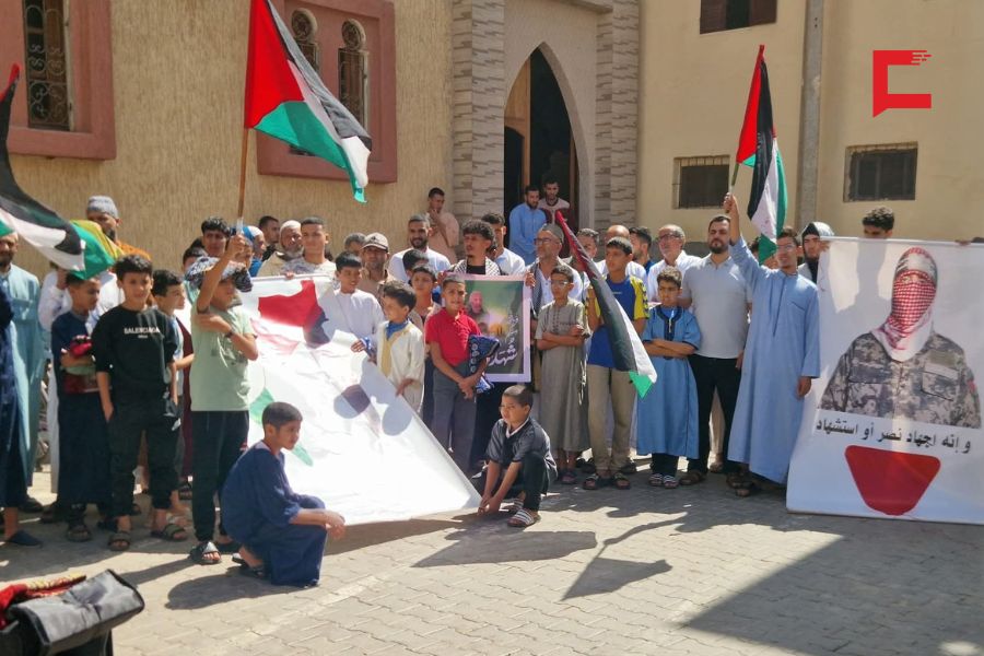 ورفع المشاركون في مدينة سوس العالمية وغيرها من المدن المغربية شعارات تندد بجرائم الاحتـلال وبالدعم الأميركي والغربي وبالصمت العربي والإسلامي الرسمي، كما استنكروا التطبيع المخزني الرسمي مع الكيان المجرم.