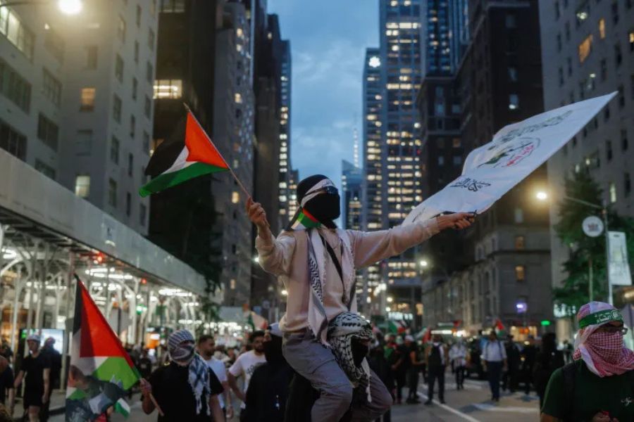 وقالت جماعة "في حياتنا" الداعمة للفلسطينيين على موقع إكس، إن حشدًا من المتظاهرين المسلمين أدى الصلاة أمام فندق ترامب في مدينة نيويورك.