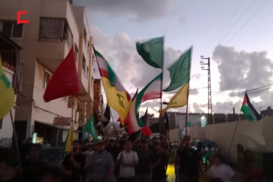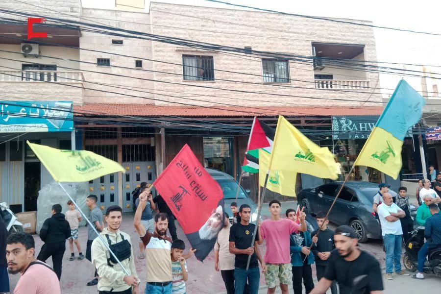 ورفع المشاركون رايات المقاومة الفلسطينية وحزب الله، تأكيدًا على وحدة الموقف المقاوم في فلسطين ولبنان، وعربون تحية للمقاومة اللبنانية التي قدمت التضحيات دفاعًا عن الشعب الفلسطيني.