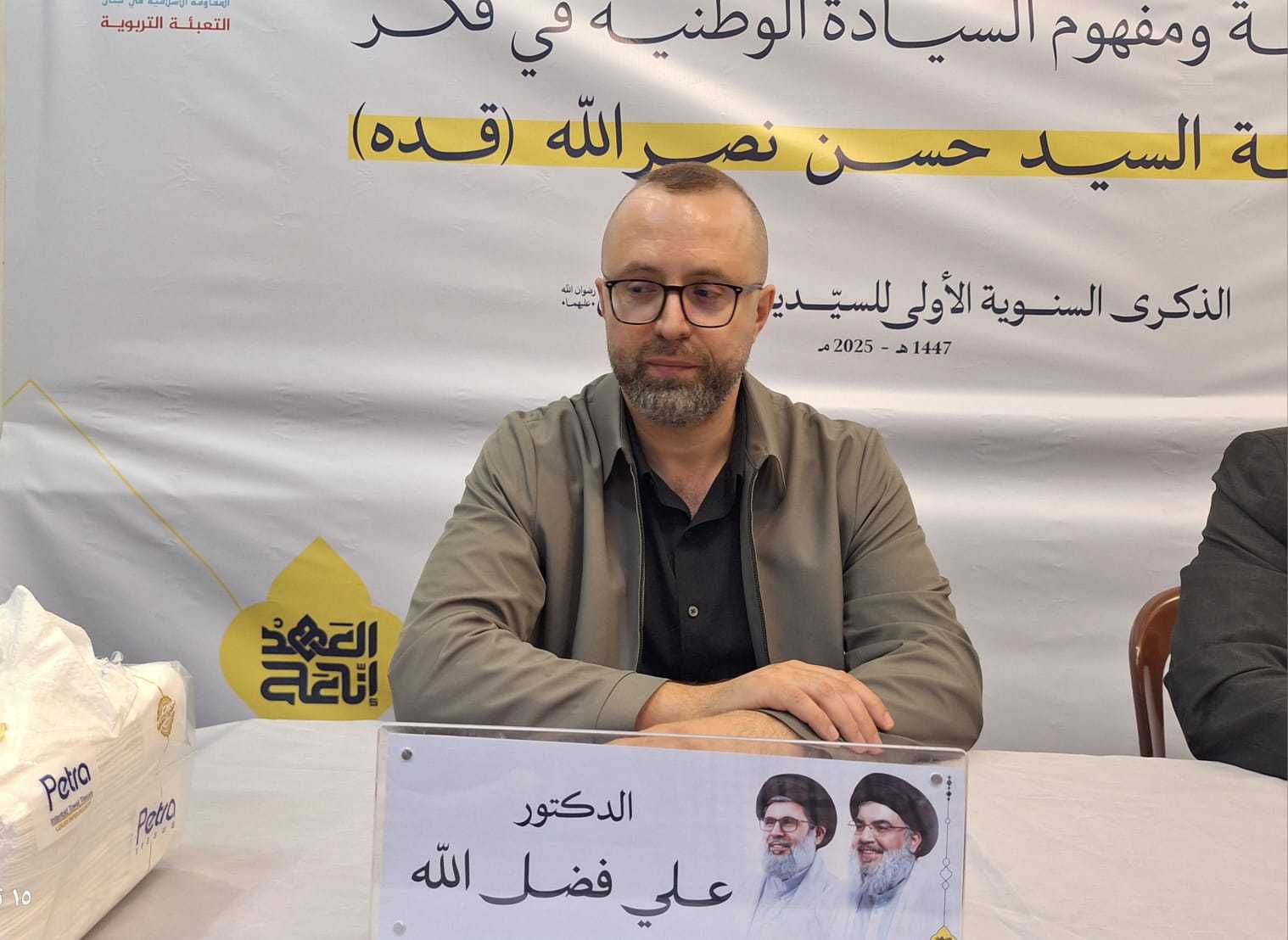 من جهته، تطرق الخبير في القانون الدولي؛ الدكتور علي فضل الله إلى سرديات المفكرين الأجانب حول حق الشعوب في الدفاع عن نفسها، مشيرًا إلى أن فكر السيد نصر الله يتقاطع في كثير من جوانبه مع المفهوم الدولي للسيادة وحق تقرير المصير، لكنه يضيف إليه بُعدًا إيمانيًا وأخلاقيًا يجعل من المقاومة مسؤولية إنسانية قبل أن تكون حقًا قانونيًا.
