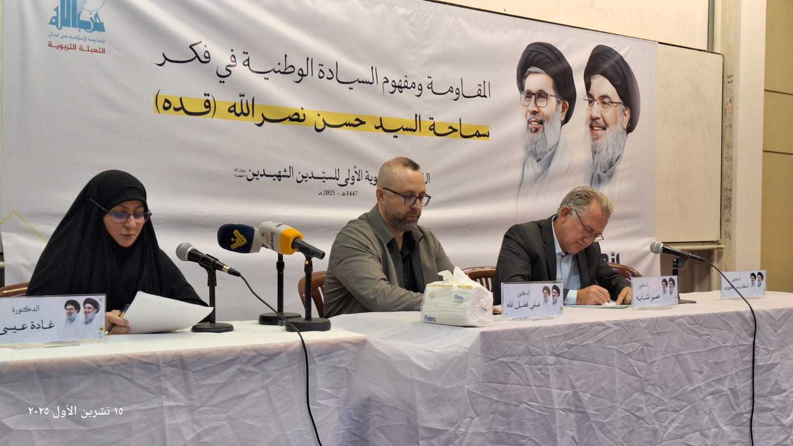 في أجواء الذكرى السنوية الأولى لاستشهاد سماحة السيد حسن نصر الله (قده)، نظّمت هيئة التعليم العالي في التعبئة التربوية ندوة فكرية – سياسية – قانونية بعنوان "المقاومة ومفهوم السيادة الوطنية في فكر السيد نصر الله"، وذلك في كلية العلوم – الجامعة اللبنانية، بمشاركة أساتذة جامعيين وباحثين، وحضور حشد من الطلاب والمهتمين.