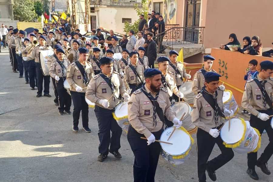 موكب التشييع انطلق من ساحة البلدة بعد أن أقيمت مراسم تكريمية له، حيث أدى ثلة من المجاهدين قسم الولاء والبيعة، بمشاركة شخصيات، وفعاليات، وعوائل الشهداء، وعلماء دين.