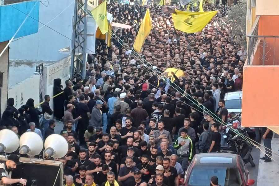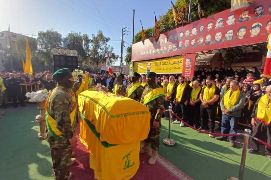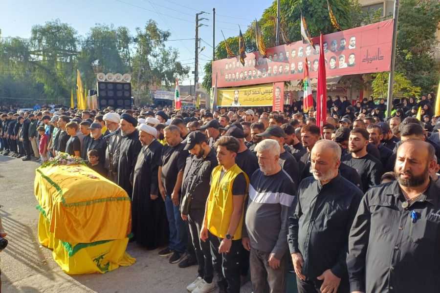 شيّع حزب الله وأهالي بلدة عين قانا والجوار الشهيد المجاهد عيسى أحمد كربلا بعد استهدافه من مسيّرة "إسرائيلية".