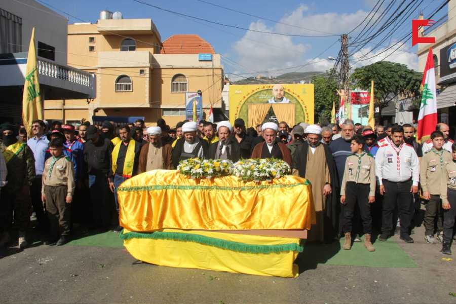 وبعد الصلاة على الجثمان الطاهر جاب النعش شوارع البلدة تتقدّمه صور الشهداء والقادة والفرقة الموسيقية التابعة لكشافة الإمام المهدي (عج) وحملة الأكاليل والرايات وسط الهتافات الحسينية والمندّدة بالعدوان "الإسرائيلي" والأميركي، والمؤكدة على مواصلة درب المقاومة حتّى النصر.