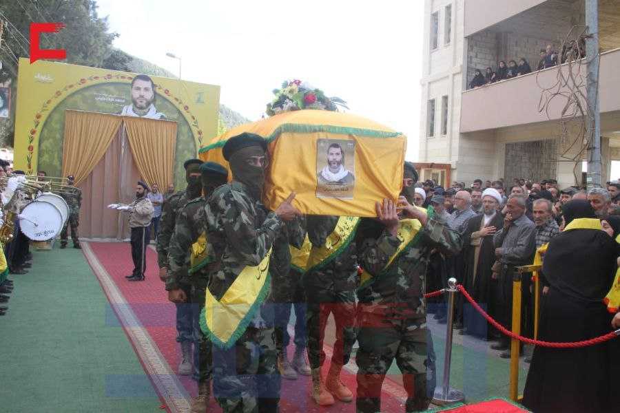 انطلق موكب التشييع من ساحة البلدة بعد أن أُقيمت مراسم تكريمية مهيبة للشهيد حيث أدّت ثُلّة من المجاهدين قسم الولاء والبيعة للمقاومة، فيما شارك في التشييع شخصيات وفعاليات إلى جانب علماء دين وعوائل شهداء وحشد من الأهالي.