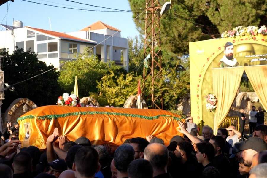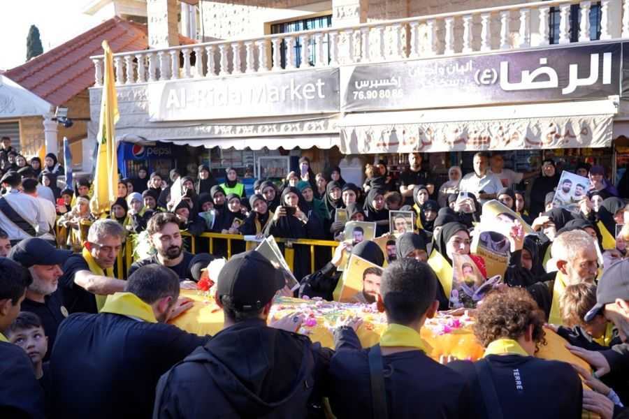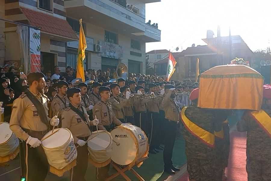 بعد الصلاة على الجثمان الطاهر؛ جاب النعش الشارع الرئيسي للبلدة تتقدمه صور الشهداء والقادة والفرقة الموسيقية التابعة لكشافة المهدي (عج)، وحملة الأكاليل والرايات، وسط الهتافات الحسينية والمندّدة بالعدوان "الإسرائيلي" والأميركي مؤكدة مواصلة درب المقاومة حتى النصر.