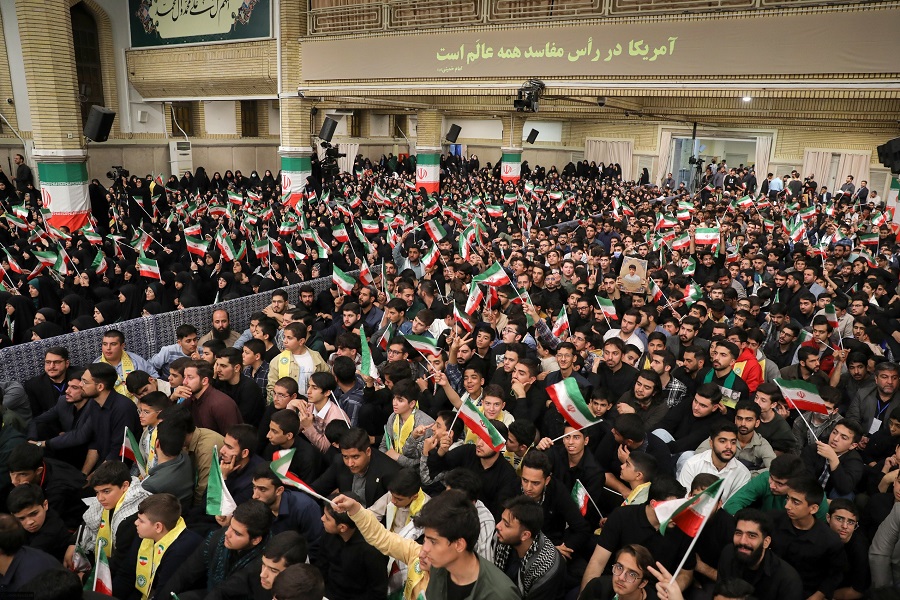 وأضاف أنه في هذه الأوقات العصيبة، لا يستطيع شبابنا أن يقولوا حرفيا "الموت لأميركا" ويقفوا بثبات ضدّ استكبار وطغيان فراعنة العصر إلا إذا كانوا أقوياء في جوانبهم الداخلية والدينية، وإذا كانوا يؤمنون بالقوّة الإلهية ويعتمدون عليها".