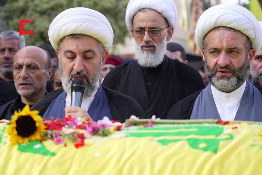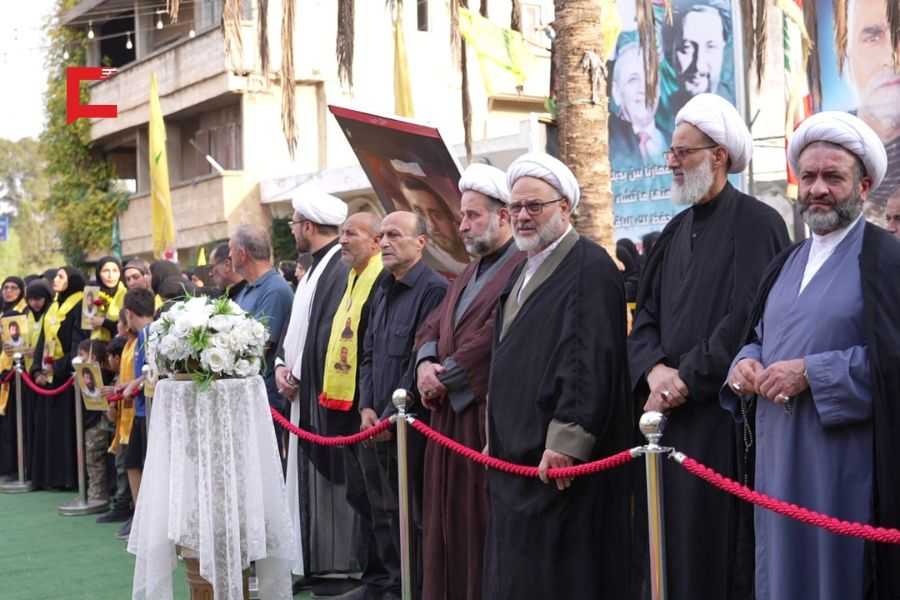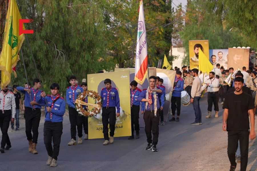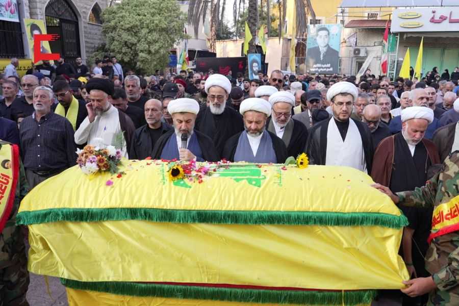 وبعد الصلاة على الجثمان الطاهر جاب النعش الشارع الرئيسي للبلدة تتقدّمه صور الشهداء والقادة والفرقة الموسيقية التابعة لكشافة الإمام المهدي (عج) وحملة الأكاليل والرايات وسط الهتافات الحسينية والمندّدة بالعدوان "الإسرائيلي" والأميركي والمؤكدة على مواصلة درب المقاومة حتّى النصر.