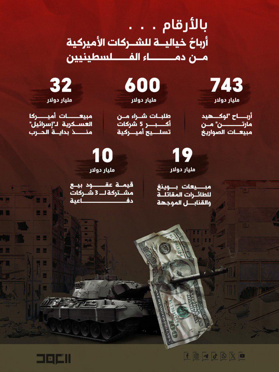 بالأرقام.. أرباحٌ خيالية للشركات الأميركية من دماء الفلسطينيين