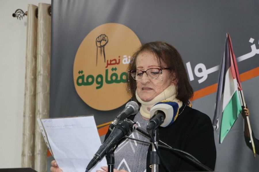 وألقت كلمة اللجنة السيدة عايدة النجار، فأكّدت أنّ "الجبل جزء لا يتجزّأ من المقاومة وتاريخها في مختلف المحطات النضالية، وأبناء هذا الجبل سيبقون حاضرين دائمًا للدفاع عن الأرض، غير آبهين بما يُحكَى عن مفاوضات هي في الحقيقة مفاوضات استسلام لا سلام كما يزعم البعض".