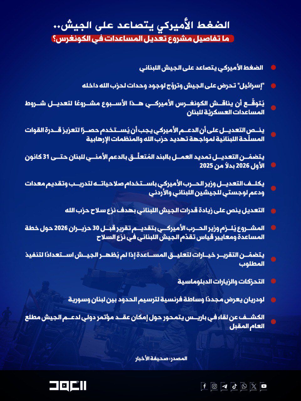 الضغط الأميركي يتصاعد على الجيش.. ما تفاصيل مشروع تعديل المساعدات في الكونغرس؟