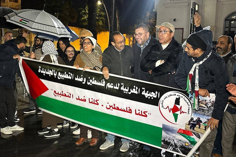 وعبّر المتظاهرون في مدينة تطوان عن رفضهم الوصاية على فلسطين وأكدوا الدعم الشعبي المغربي الدائم واللامشروط للقضية الفلسطينية والرافض للتطبيع.