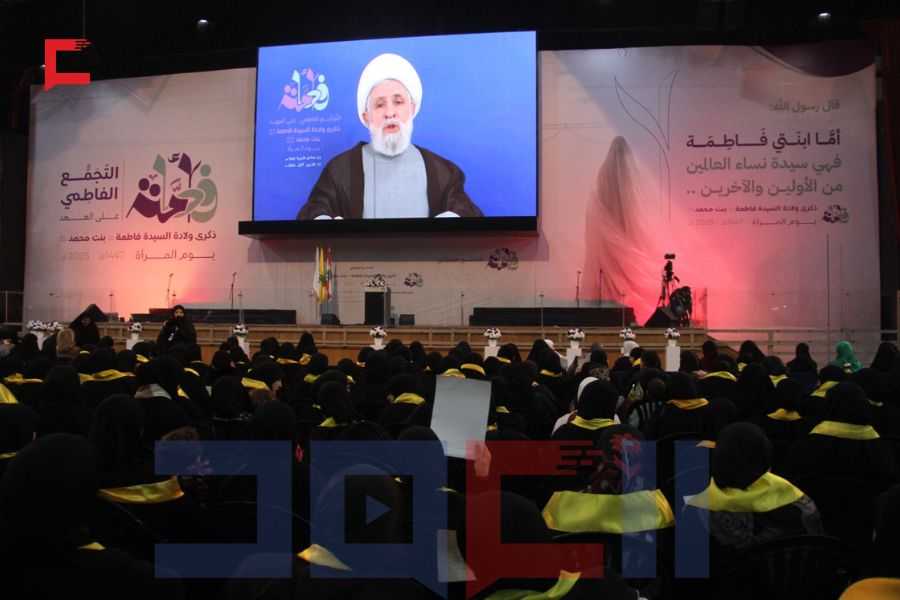 واختتم الحفل بكلمة للشيخ قاسم، شكر فيها وحدةَ العمل النسائي على هذا التجمع الفاطمي الكبير الذي يعبر عن القناعة المرتبطة بحزب الله. وتوجه للأخوات الحاضرات قائلًا: "اليوم نجتمع على عهد المقاومة، على عهد حزب الله، على عهد سماحة سيد شهداء الأمة". وعبّر الشيخ قاسم عن افتخاره بالمرأة المقاومة؛ البنت والأم والزوجة والجدة، فهنّ رايات العز والأخلاق والوطنية، والثلة الطاهرة من العظيمات اللاتي تصدّين في مواجهة العدو ورفع راية الحق والاستقامة.