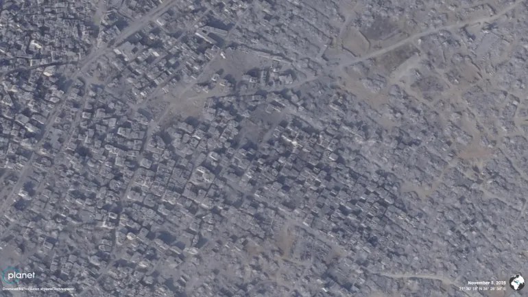 أظهرت صور أقمار صناعية استمرار الاحتلال "الإسرائيلي" في عمليات النسف والهدم للمنازل والمنشآت في المناطق التي يسيطر عليها، والمعروفة باسم "المناطق الصفراء"، في قطاع غزّة، وذلك خلال الفترة بين 5 تشرين الثاني / نوفمبر و13كانون الأول/ ديسمبر الجاري.