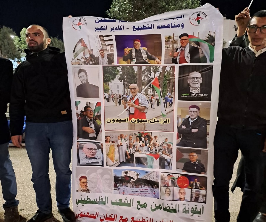 وجدّد العهد لشعب فلسطين ومقاومته الباسلة على مواصلة الرفض المغربي الشعبي المطلق لمخطّطات تصفية القضية وعلى مواصلة النضال في الجبهة المغربية لدعم فلسطين ومناهضة التطبيع حتّى إسقاط التطبيع.
