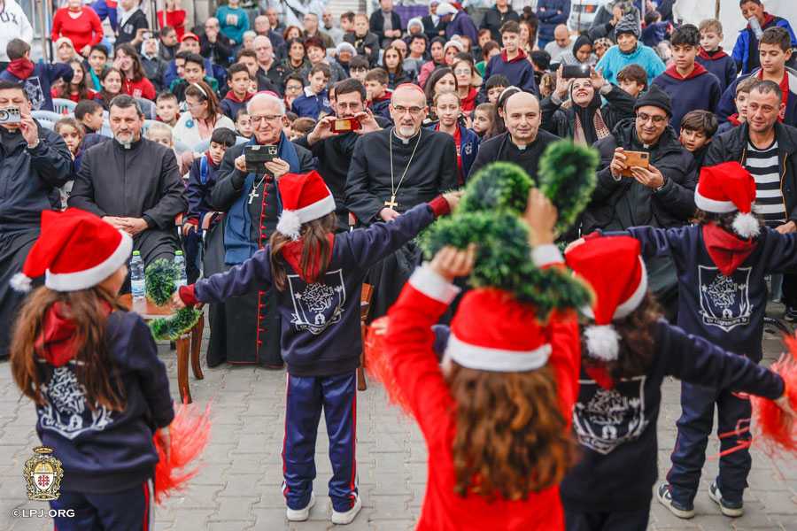 وشهد شارع النجمة الضيق، والمؤدّي إلى كنيسة المهد، مسيرة شارك فيها مئات الأشخاص وصولًا إلى ساحة المهد التي غصّت بالمحتفلين، في ما تابع آخرون الأجواء من شرفات مبنى البلدية. وتصدّرت الساحة شجرة ميلاد ضخمة، تزيّنت بكرات حمراء وذهبية مضيفة أجواءً من البهجة والفرح.