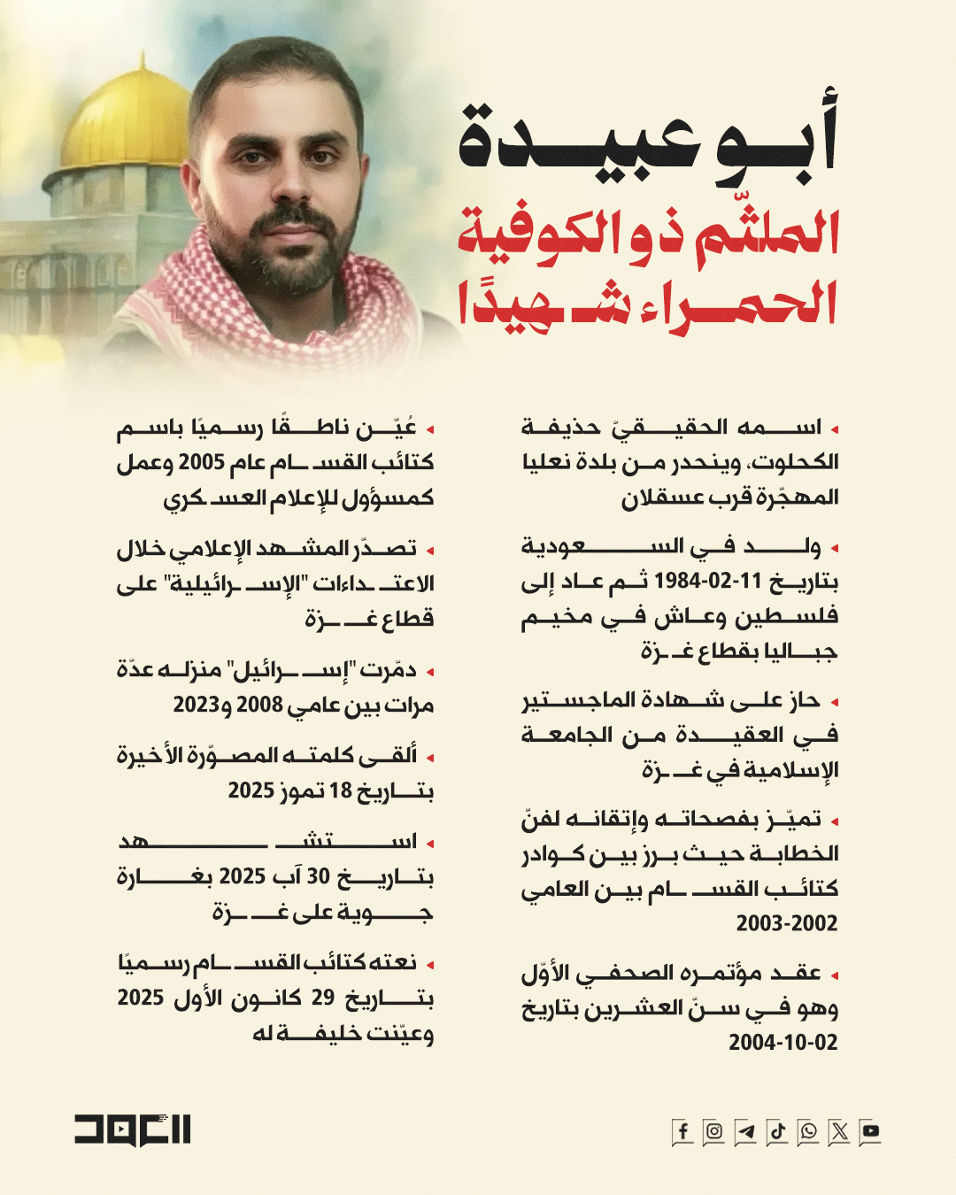 أبو عبيدة: الملثّم ذو الكوفية الحمراء شهيدًا