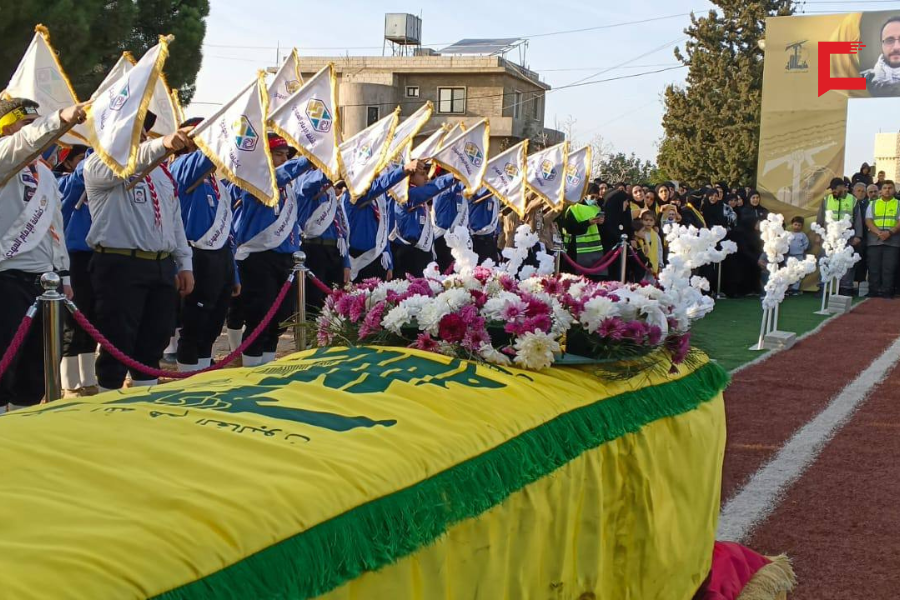 وتقدّمت مسيرة التّشييع فرق من كشافة الإمام المهدي حملت الرايات الحسينية والكشفية ورايات لبنان والمقاومة وصور القادة وشهداء المقاومة الإسلامية، وسيّارات إسعاف تابعة لمديريّة جبل عامل الأولى في الدّفاع المدنيّ - الهيئة الصحّيّة الإسلاميّة جابت شوارع البلدة وصولًا إلى جبّانتها، قبل أن يُصلّى على الجثمان الطّاهر الذي ووري في الثرى إلى جانب من سبقه من رفاق دربه.