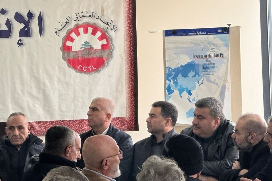 عقدت اتحادات ونقابات قطاع النقل البري اجتماعًا في مقر الاتحاد العمالي العام لمناقشة أوضاع القطاع وعدم الالتزام بتنفيذ الاجراءات التي تم الاتفاق عليها مع رئيس الحكومة نواف سلام حضره حشد من عمال القطاع.