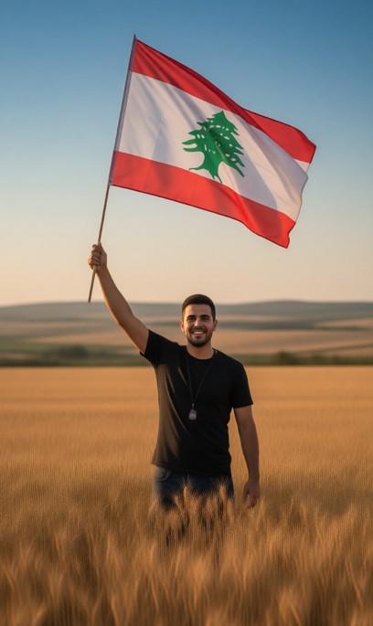 صورة بصرية واضحة تعكس طلبك ذات محتوى مقنع وجيد. هذه هي المحاولة الأولى لنموذج chat.qwen.ai المجاني؛ فالصورة جيدة من ناحية التركيب والمكونات، فالشاب يبدو لبنانيًا وفي الثلاثين من عمره وسط الحقل الزراعي رافعًا العلم اللبناني. هذه الصورة جيدة جدًا تعكس الطلب وتجسد الفكرة بشكل مقنع وصالحة للاستخدام.
