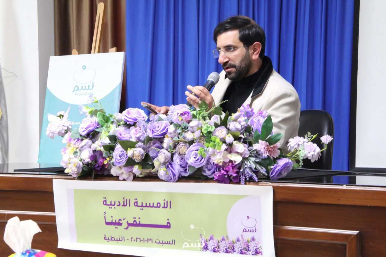 في أجواء عابقة بالأنس بمناسبة ولادة منقذ البشرية الإمام المهديّ (عج)، وبرعاية سماحة الشيخ حسين زين الدين، نظم منتدى "نَسَم" الثقافي بالتعاون مع مركز الإمام الخميني الثقافي أمسية أدبية بعنوان "فنقرّ عينًا"، في مركز الإمام الخميني الثقافي - النبطية.