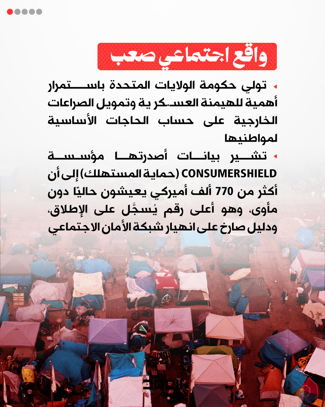 770 ألف أميركي دون مأوى ميزانيات الحروب الأميركية تتجاهل الأوضاع الاجتماعية!