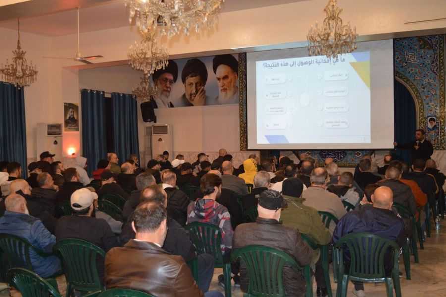 بعدها، أقيمت ورشة عمل تحت عنوان "التثقيف الانتخابي"، قدمها الأستاذ حسن الغضبان؛ تضمنت شرحًا تقنيًا لآليات الاقتراع، وتوضيحًا للقوانين الانتخابية النافذة ورفع مستوى وعي الكوادر والأهالي عن كيفية المشاركة الفعالة والمنظمة في العملية الانتخابية.