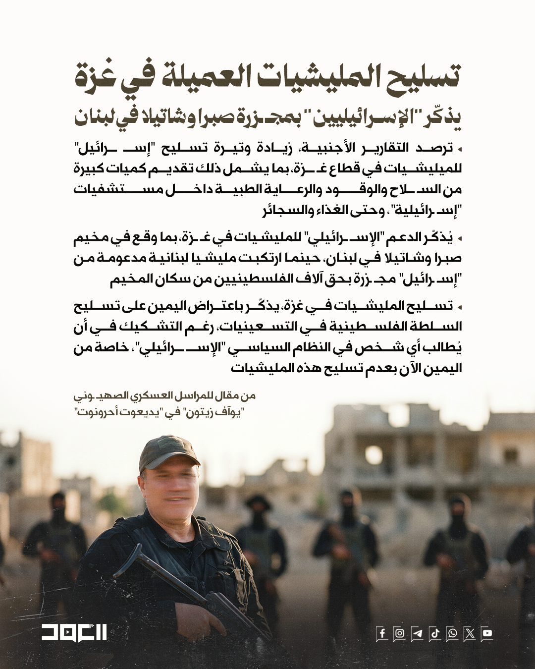 تسليح الميليشيات العميلة في غزّة يذكّر "الإسرائيليّين" بمجزرة صبرا وشاتيلا في لبنان