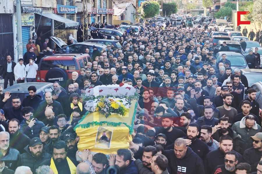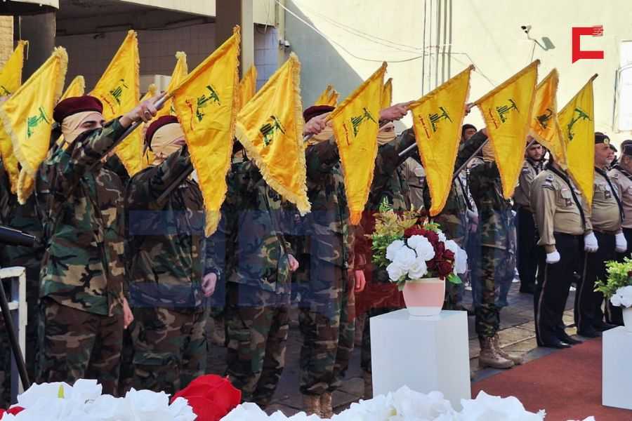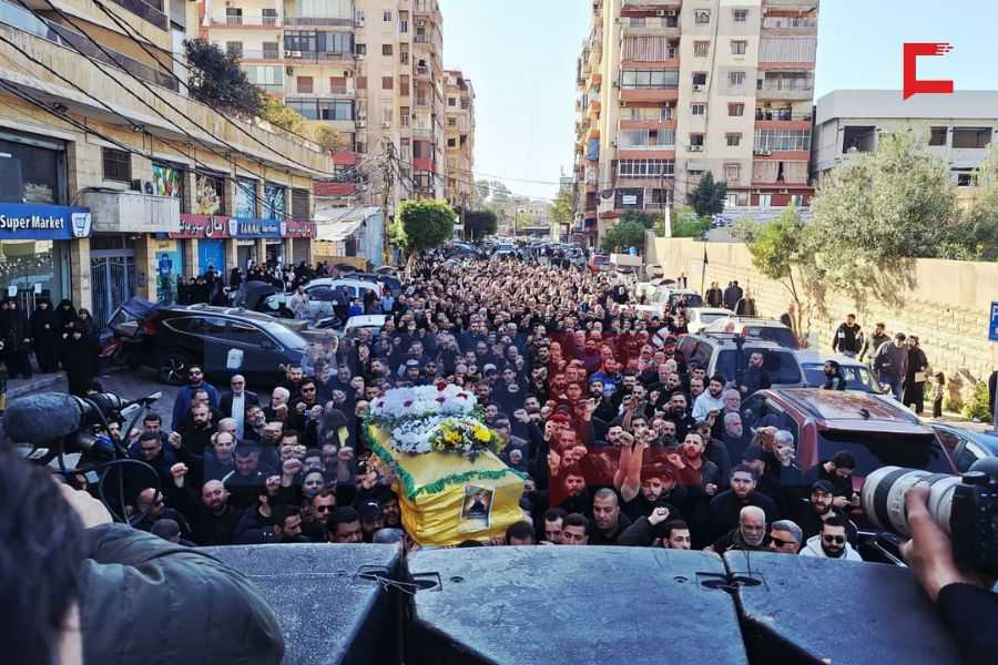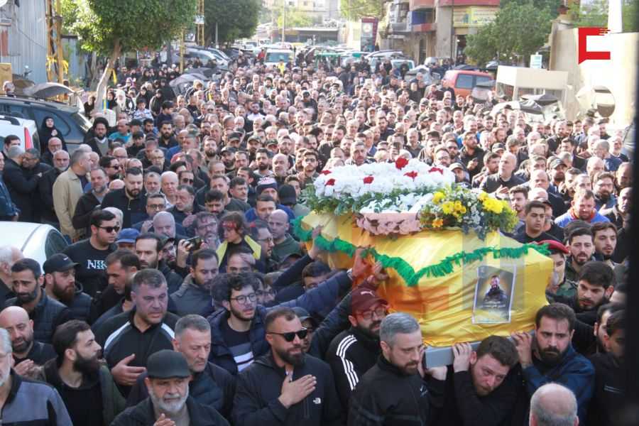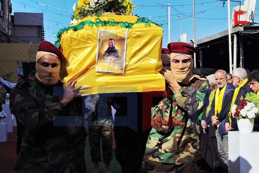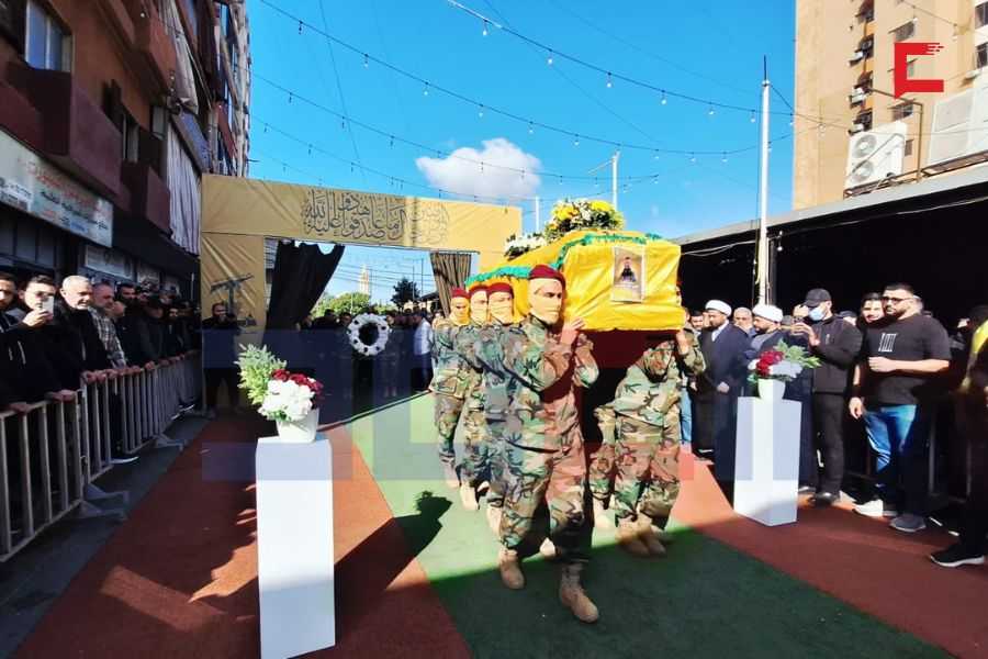 وأقيمت المراسم التكريمية للشهيد، حيث تولت ثلة من المجاهدين حمل النعش الذي لُفَّ بعلم حزب الله. وعلى وقع عزف موسيقى لحن الشهادة من الفرقة الموسيقية لكشافة الإمام المهدي (عج)، تقدم حملة النعش نحو المنصة الرئيسة وأمامهم راية حزب الله، ثم عُزفت موسيقى النشيدين الوطني اللبناني وحزب الله.