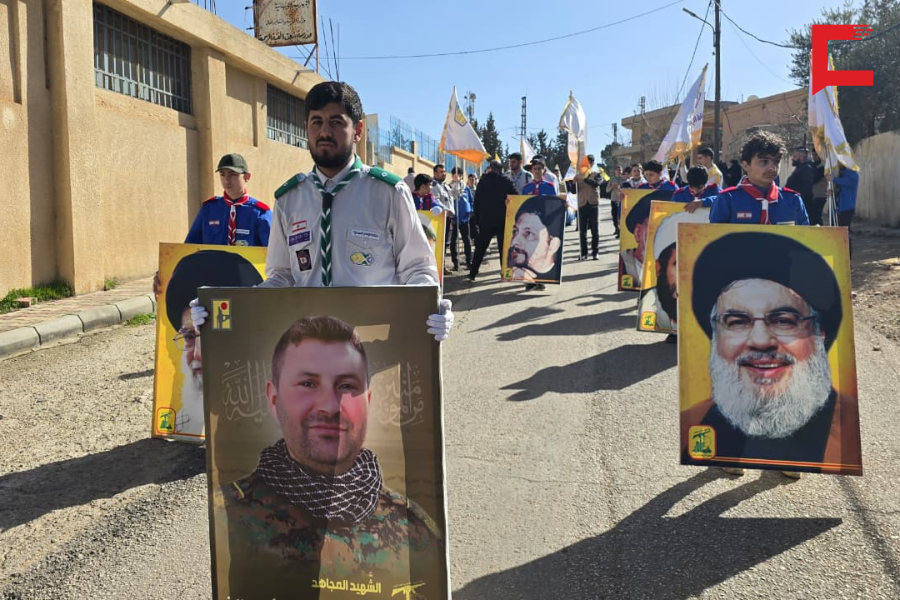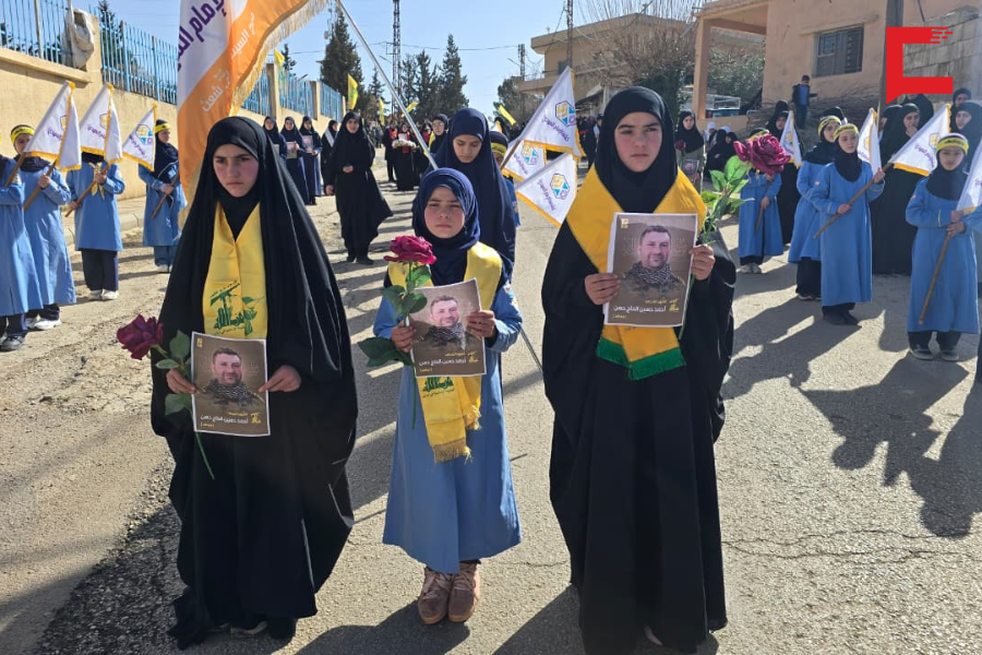بعدها جاب المشيّعون الطريق الرئيس للبلدة وسط الهتافات الحسينية وشعارات الموت لأميركا ولـ "إسرائيل".