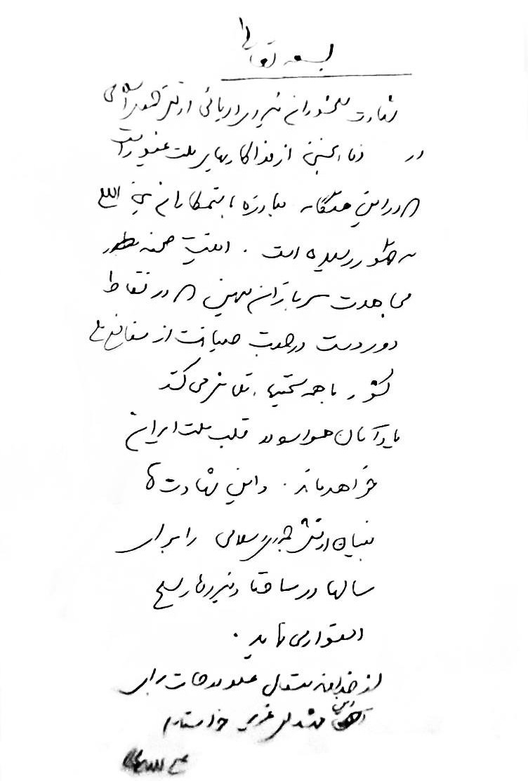 وجاء في مخطوطة كتبها الدكتور علي لاريجاني بخط يده اليوم لثلاثاء 17 آذار/مارس 2026، عشية جنازة أبطال البحرية: "إن استشهاد أبطال البحرية في جمهورية إيران الإسلامية في دنا هو جزء من تضحيات الأمة الباسلة التي برزت في هذا الوقت العصيب ضد الظالمين الدوليين... ستبقى ذكراهم خالدة في قلوب الشعب الإيراني، وستشكل هذه الشهادة أساس جيش جمهورية إيران الإسلامية لسنوات عديدة في هيكل القوات المسلحة".