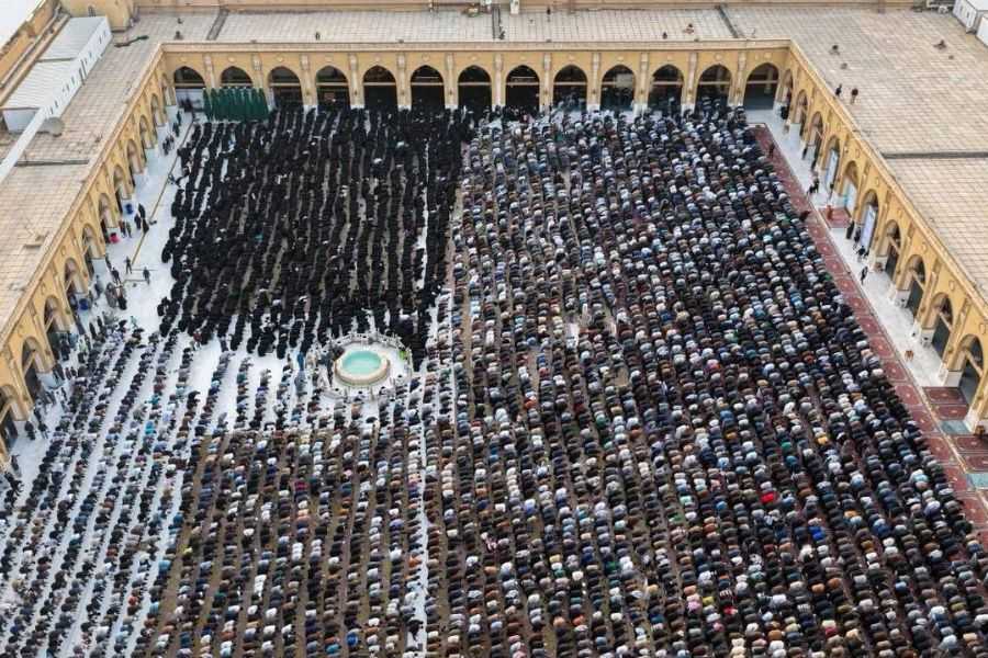 وأضاف أنّه في الوقت الذي يُكبِّر المؤمنون فيه اللهَ تعالى فرحًا بنعمته، تتعالى صرخات الأطفال، وتنهمر دموع الثكالى، وتتصاعد ألسنة اللهب فوق بيوت الآمنين في إيران ولبنان.