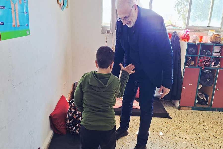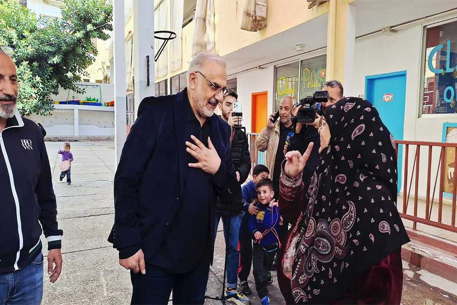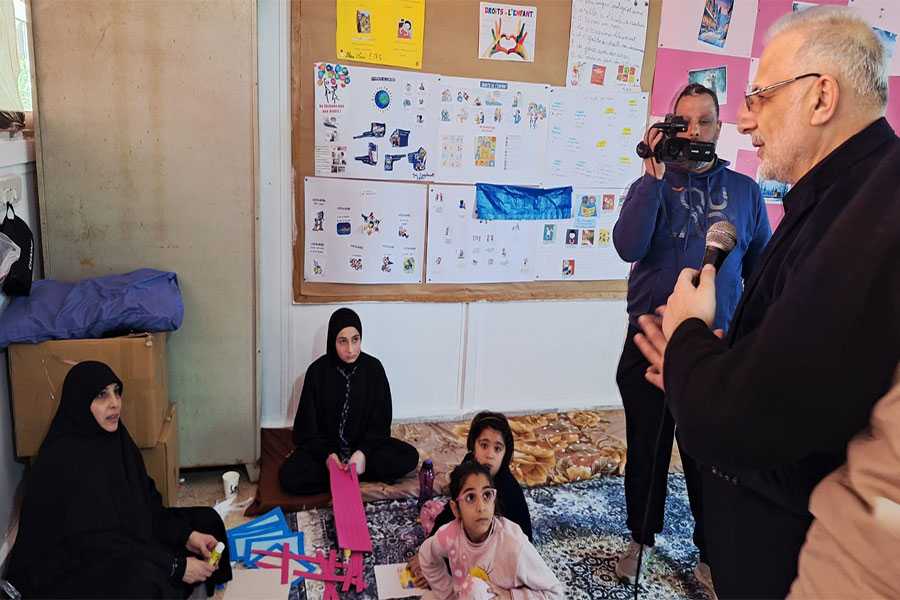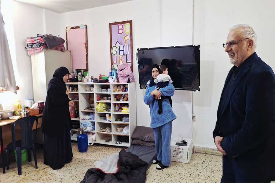 جال عضو كتلة الوفاء المقاومة النائب الدكتور علي المقداد على مدرسة تستقبل نازحين في كورنيش المزرعة في بيروت.