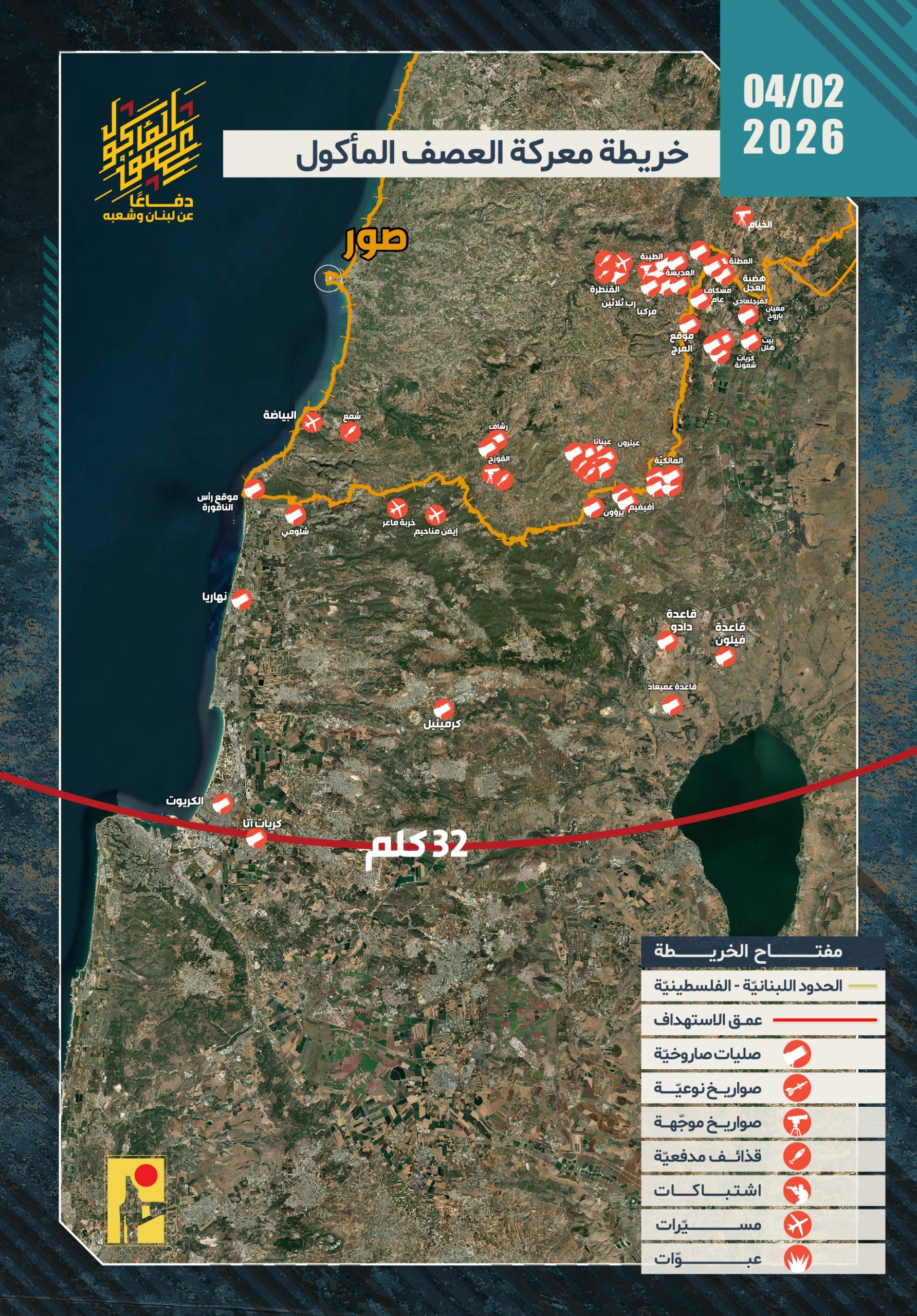 دفاعًا عن لبنان وشعبه، أصدرت المقاومة الإسلامية بتاريخ الخميس 02/04/2026، 49 بيانًا عسكريًا حول عمليات التصدي لتحركات العدو "الإسرائيلي" عند الحدود اللبنانية الفلسطينية، وكذلك عمليات استهداف مواقع وقواعد وانتشار جيش العدو ومستوطناته في شمال فلسطين المحتلة، وفقًا للآتي: