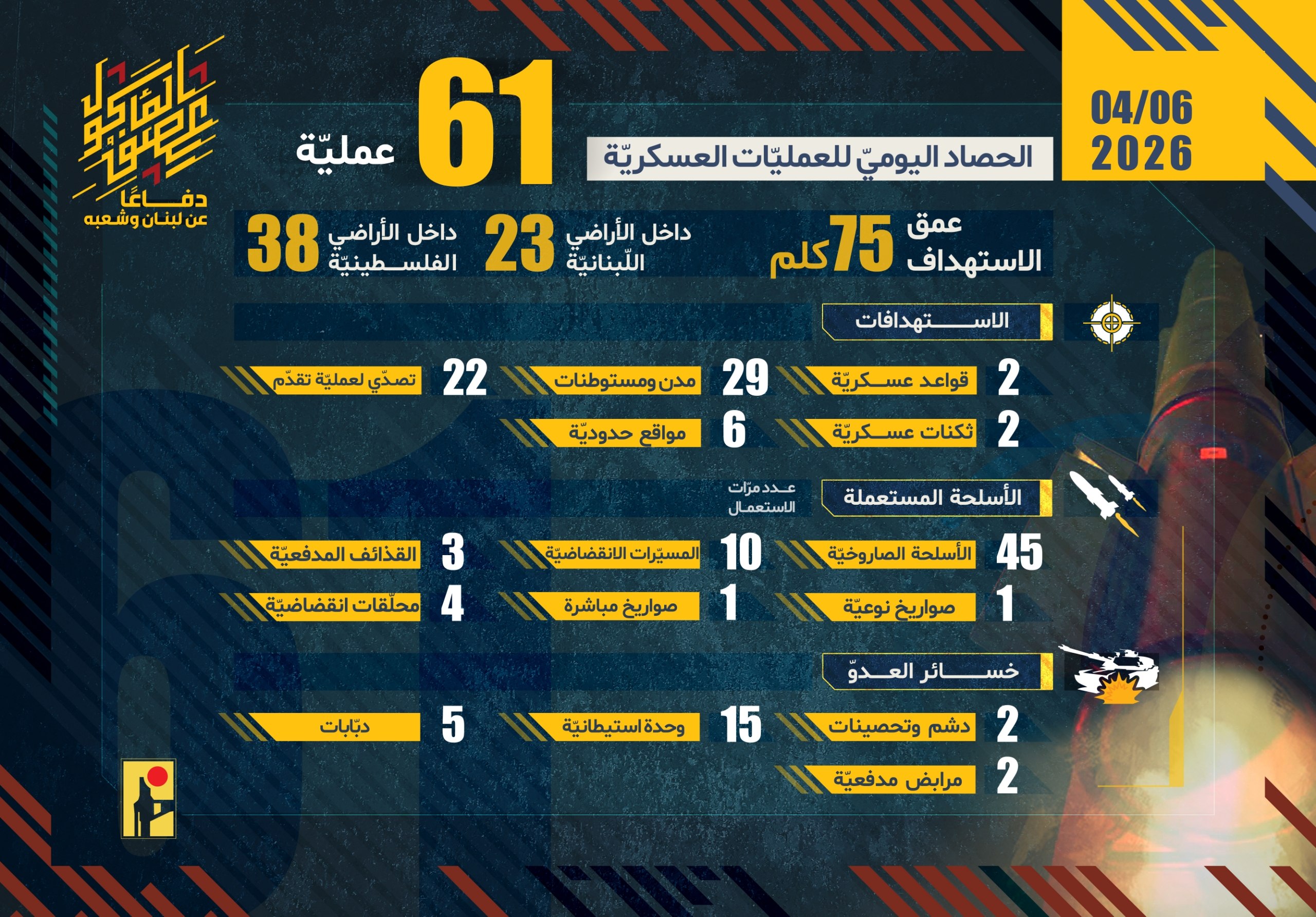 الحصاد اليومي لعمليات المقاومة الإسلامية بتاريخ 06-04-2026