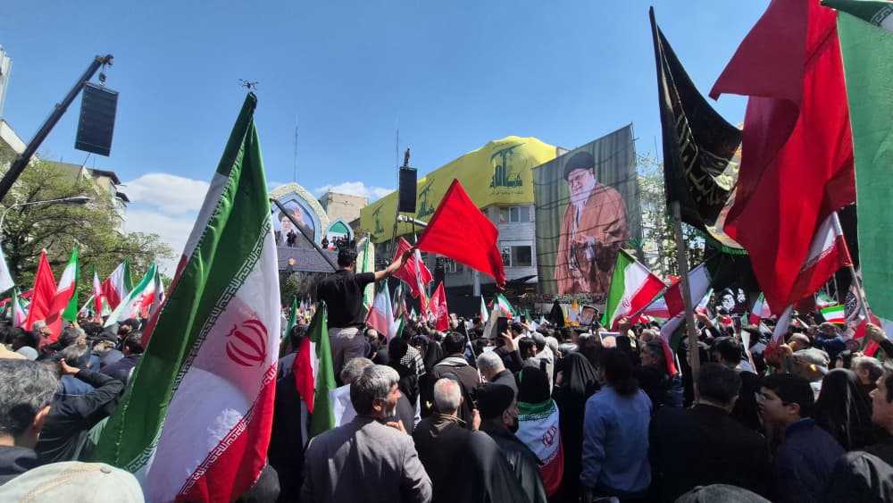 يشهد مكان استشهاد آية الله العظمى القائد الإمام الشهيد السيد علي الخامنئي حشودًا مليونية من الإيرانيين الذي قدموا للتعبير عن تمسّكهم بالمقاومة بوجه العدو الاسرائيلي والأمريكي.