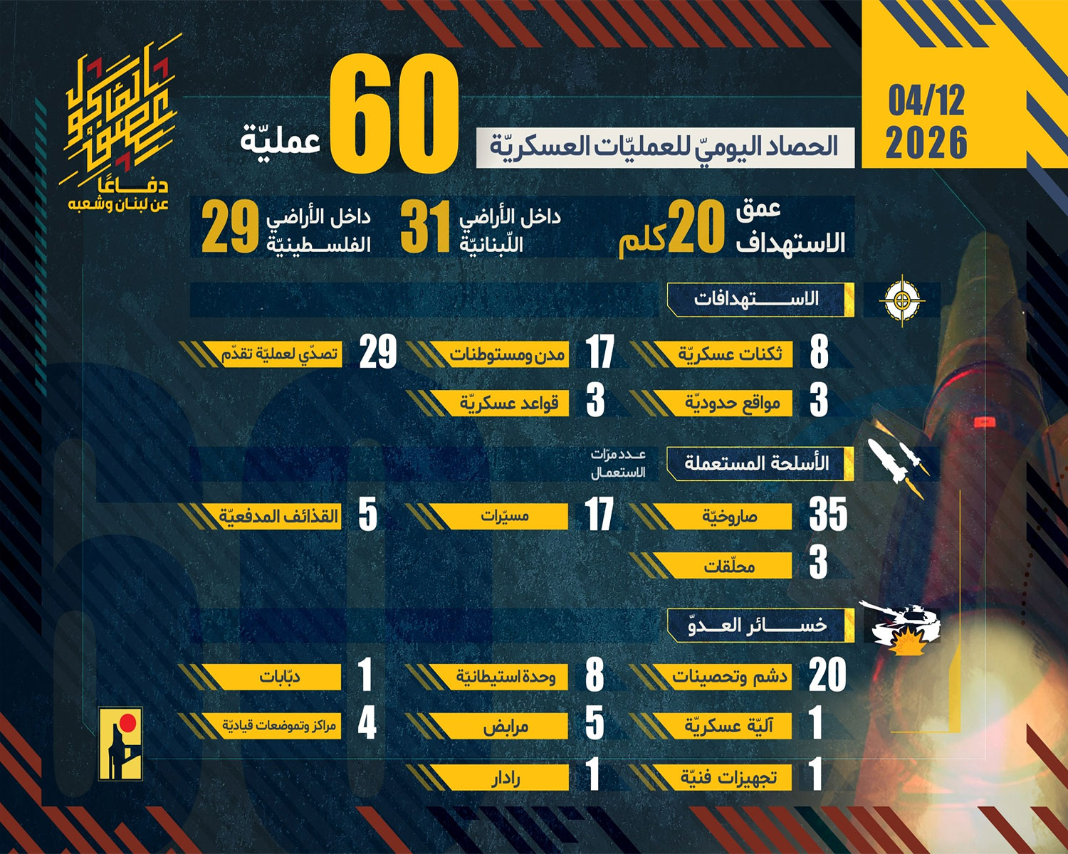 الحصاد اليومي لعمليات المقاومة الإسلامية بتاريخ 12-04-2026
