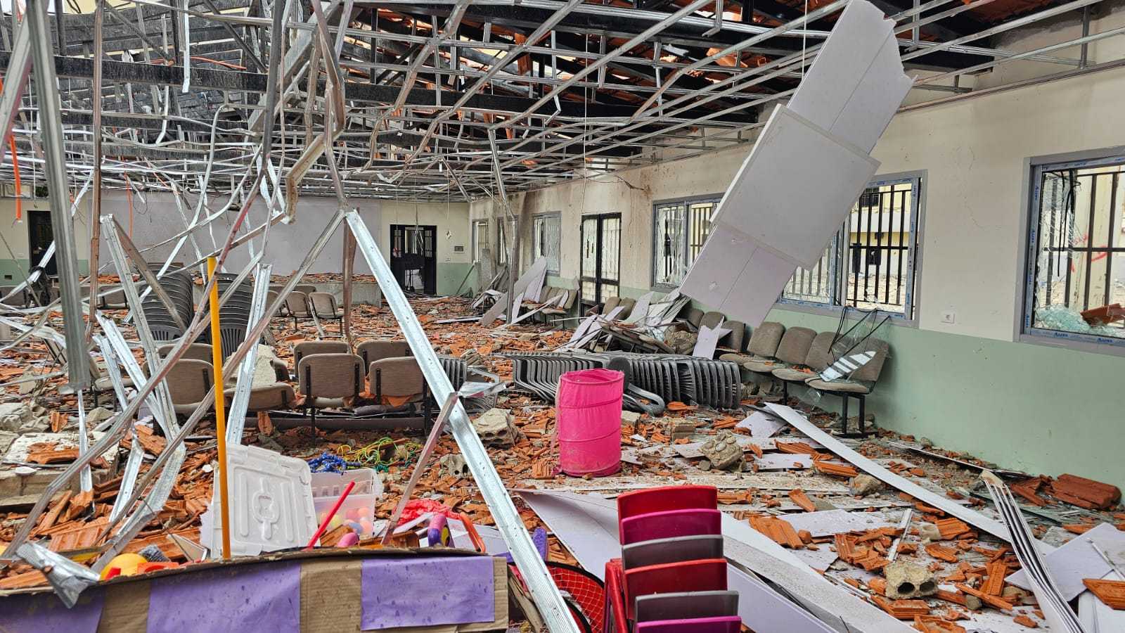 منذ اللحظة الأولى لدخول باحة المدرسة، يتبدّى المشهد قاسيًا إلى حدّ يصعب توصيفه: زجاج النوافذ كلّه تحطّم، الأسقف سقطت فوق المقاعد، القاعات التعليمية دُمّرت بشكل شبه كامل، والجدران تآكلت بفعل الانفجارات، فيما تناثر القرميد في كل زاوية، كأنّ المكان تعرّض لعاصفة اقتلعت كل ما فيه. أما المختبر الذي كان يومًا مساحة لاكتشاف العلوم، فقد بات أثرًا بعد عين، بعدما طالته الأضرار بشكل كامل.