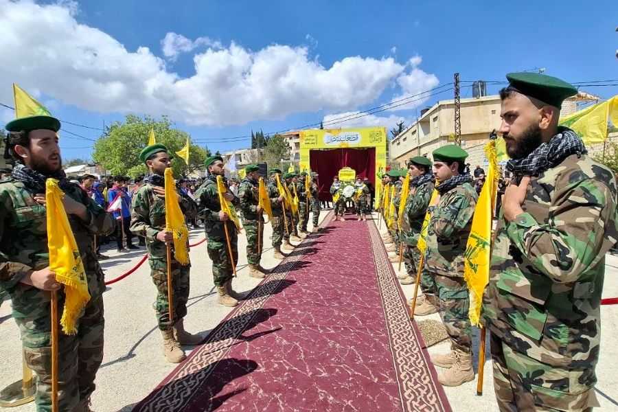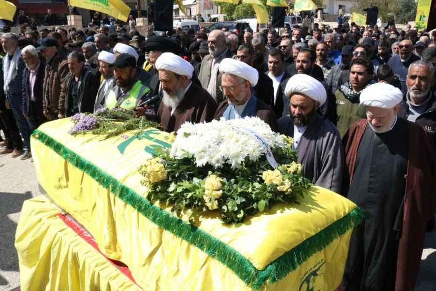بعدها انطلق موكب التشييع، حيث جاب المشيعون الطريق من باحة الحسينية وصولًا إلى روضة الشهداء وسط الهتافات الحسينية وشعارات الموت لأميركا ولـ"إسرائيل".