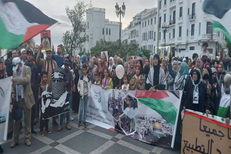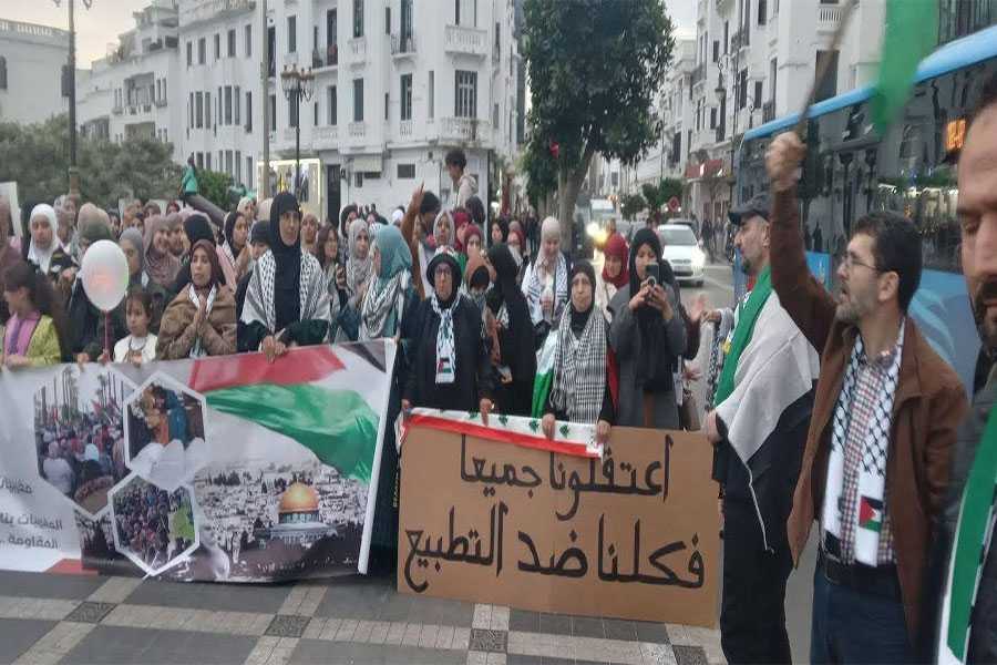 تكشف الصور القادمة من المسيّرات، والتي ترفع صور الرموز النضالية الفلسطينية جنبًا إلى جنب مع الأعلام المغربية، أن الشارع المغربي يرفض أن تكون دماء الفلسطينيين جسرًا لأي تطبيع صهيو-مغربي.