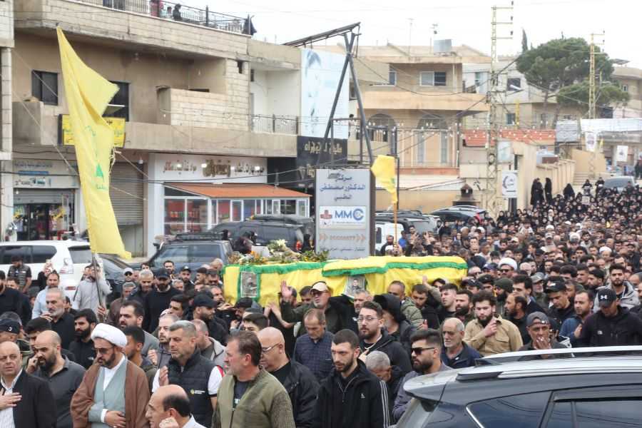 موكب تشييع الجثمانين الطاهرين انطلق من أمام حسينية البلدة ''على وقع الشعارات المؤيدة للمقاومة الإسلامية ولنهج الشهداء"، يتقدمه الفرقة الموسيقية من كشافة الإمام المهدي (عج)، وحملة الرايات وحملة الأكاليل، وصولًا إلى جنة شهداء بريتال حيث وُورِيَا الثرى.