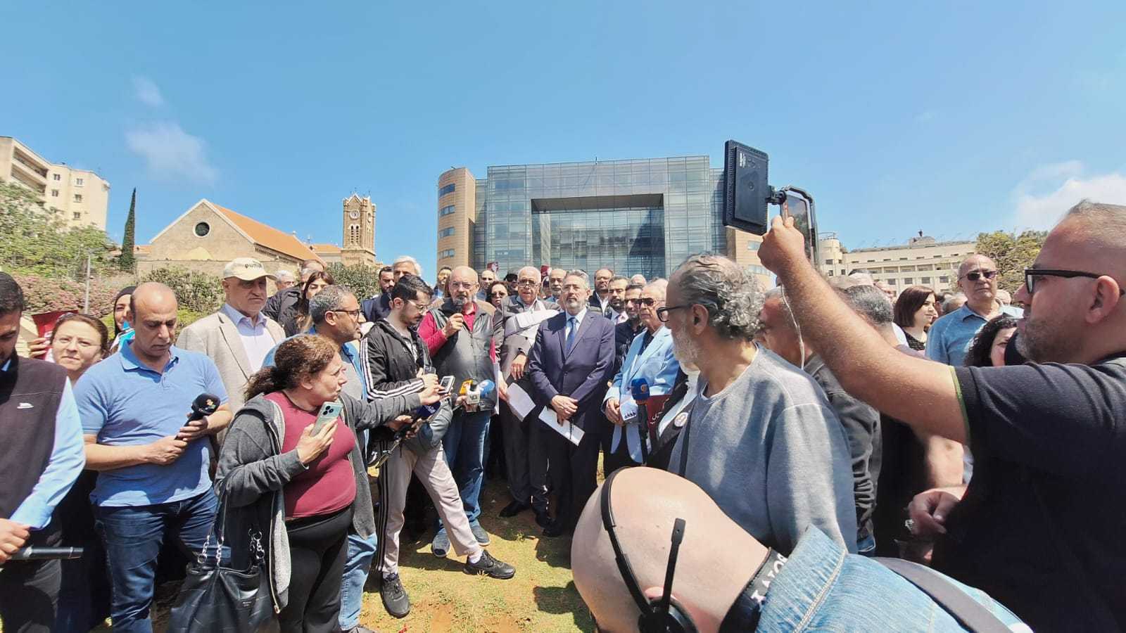 نفّذت نقابة محرري الصحافة اللبنانية أمام مقر "الإسكوا" في بيروت وقفة احتجاجية وتضامنية لرفع الصوت ضد استهداف الجسم الإعلامي ووفاءً لدماء من بذلوا أرواحهم في سبيل الحقيقة.